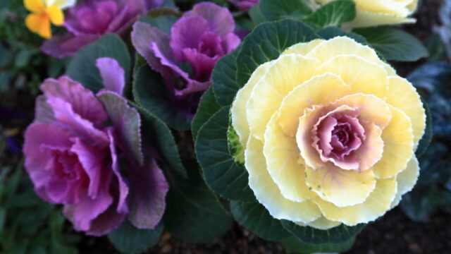 あけましておめでとうございます。新年を迎えてから早くも一月、明日から二月ですが、今年もよろしくお願いします。用事に出掛けるために駅へ行ったら駅前広場に葉牡丹の鉢植えが置いてあったので撮りました。肉厚なところが何となくキャベツの葉を感じさせま...