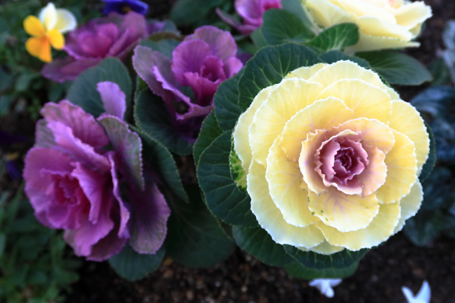 駅前広場に葉牡丹の鉢植えが置いてあったので撮りました。